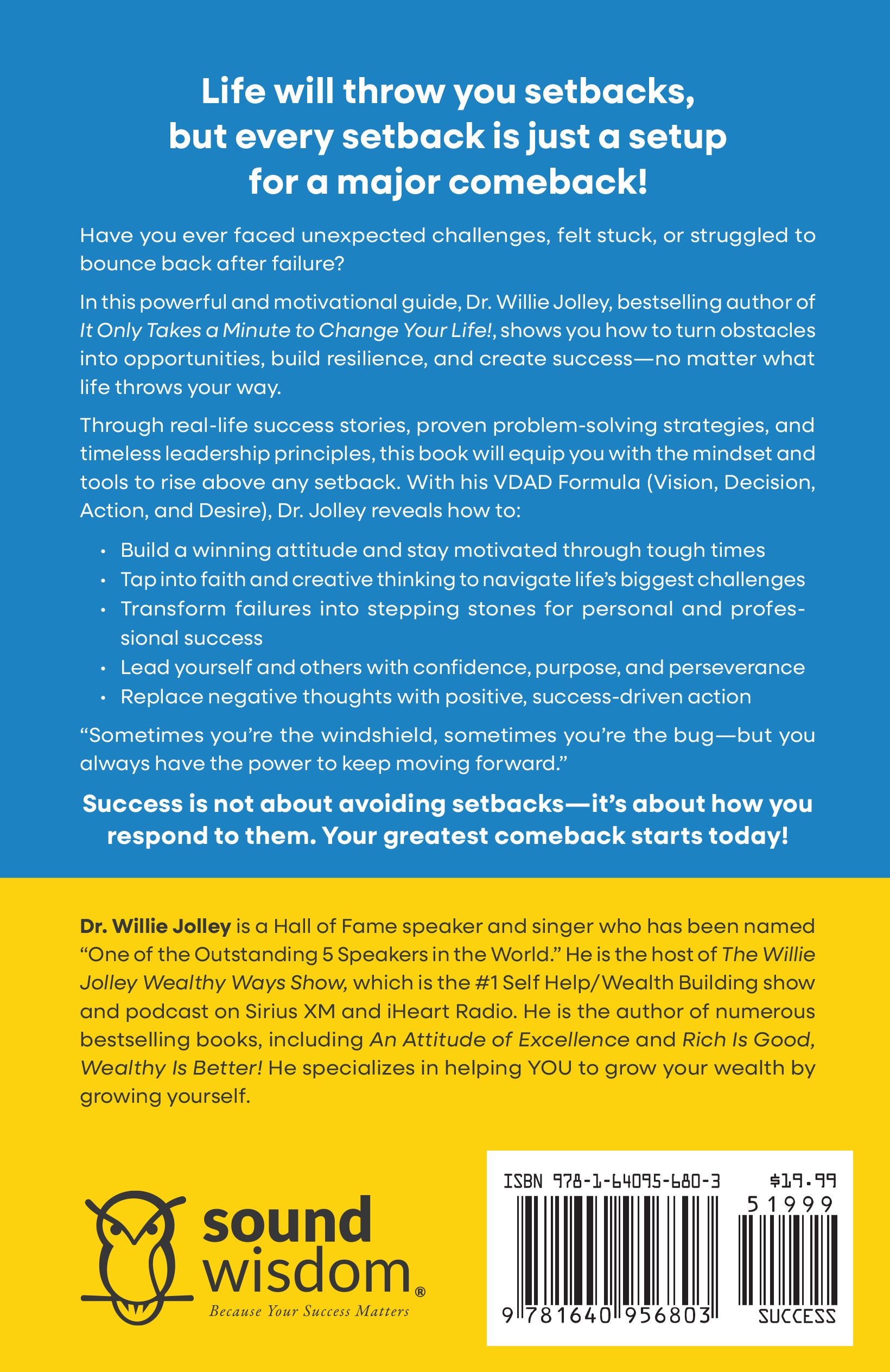 Life will throw you setbacks, but every setback is just a setup for a major comeback! Have you ever faced unexpected challenges, felt stuck, or struggled to bounce back after failure? In this powerful and motivational guide, Dr. Willie Jolley, bestselling author of It Only Takes a Minute to Change Your...